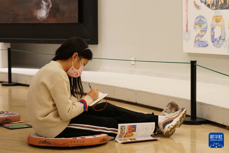 王梓洁在美术馆里绘画。 新华社记者 朱昊晨 摄