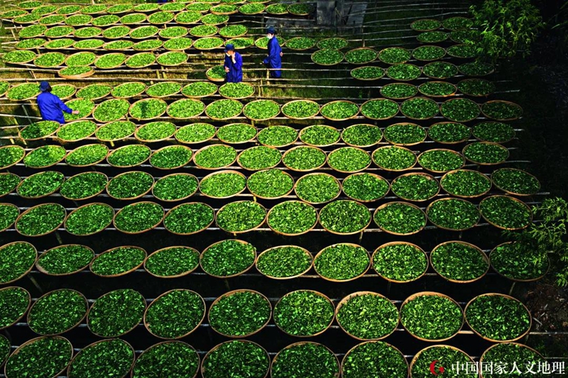 采收来的鲜叶摊放一段时间,使鲜叶蒸发一部分水分,减少细胞胀力;使叶质柔软,增强柔性;使之叶色暗绿,青草气大部分消失,略有清香,减重率达30%至40%,以便转入下一道工序——揉捻。