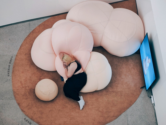 观展人在徐若昕设计的沙发上体验、休息。受访者供图