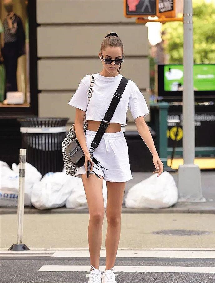 但要注意,如果大腿根较粗,那要选足够宽松且是A字版形的运动风短裤,太小或太窄的穿起来都容易显胖且尴尬。