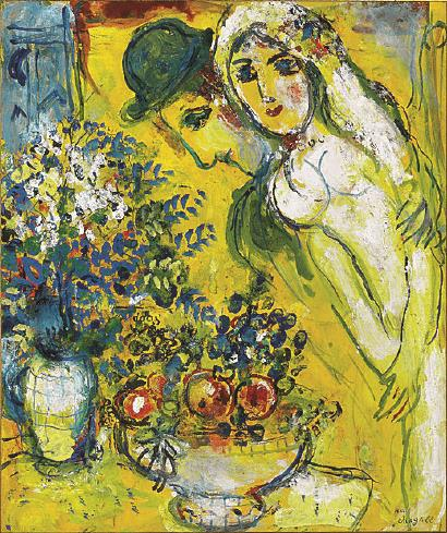 夏加尔《黄色背景上的恋人》,将亮相久事美术馆“爱即色彩——马克·夏加尔展”。