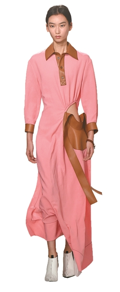 广东十佳设计师邵诗茹告诉记者,“Polo裙”问世的因由与“Polo衫”相似,但从时装的发展角度来说,裙装要更开放更时髦一些,“传统的直筒型已经被设计师们改良了,年轻人群更偏好多样性的尝试,包括A字版型、修身款、JK风等”。2018年,Loewe在春夏巴黎时装周上做出对“Polo裙”比较时装化的设计与改造,以其标志性的衣领为拼接灵感,分别点缀在袖口与裙摆细节处,更大胆地对单边腰间做出挖镂空的处理,满满的高级时装感。但到了2019年春夏,同样的秀场同样的“Polo裙”,除了颜色切割依然充满“高级时装味”,整体版型都保留了“Polo裙”的原始运动感,追溯本源的设计开始回归。