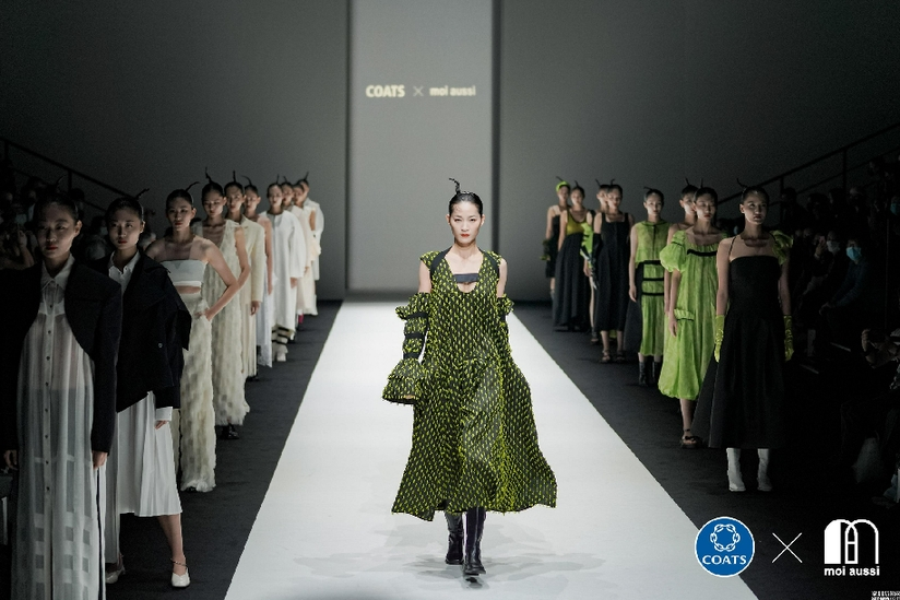 COATS X moi aussi联合走秀,是高士 ( COATS)首次尝试与独立设计师品牌合作。双方从深圳时装周“光合感知”主题出发,以 COATS X moi aussi2022SS春夏系列对“可持续时尚”的内核进行全新演绎。