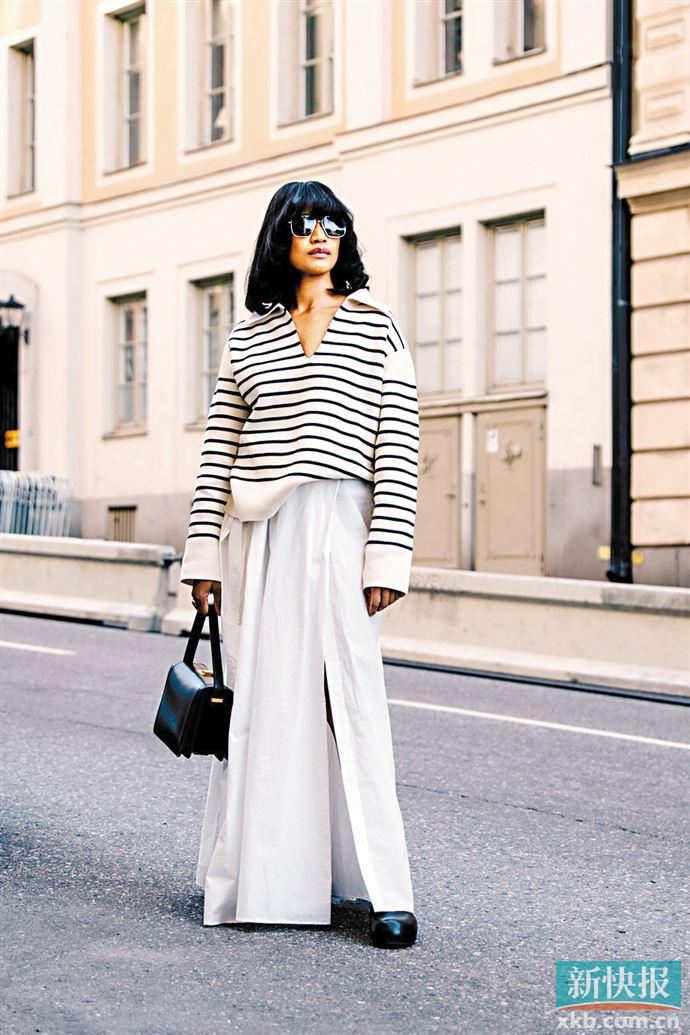 今年流行的款式辨识度更高,风格上更慵懒随性,总结起来是三个特点:黑白条纹、宽松版型和宽间隔。