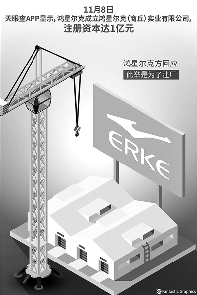 11月9日,曾因今年河南暴雨灾害捐助5000万物资而爆红的鸿星尔克再上热搜。这次是因为其在河南商丘成立了实业公司,引发了网友对其是否会涉足房地产的猜测。而鸿星尔克在官微明确这一公司其实是为其在河南建厂,是鸿星尔克河南商丘睢县鞋服产业园。