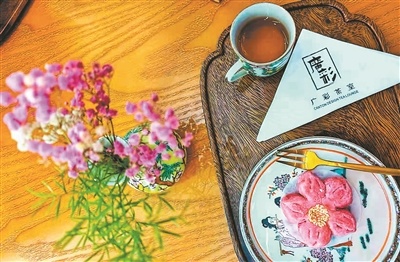 在广州非遗街区(永庆坊)的一处三层小楼中,陈韵诗开了一家“广彩茶室”。在这里,传统广彩的图样、器型等元素被重新演绎成多种多样的形态,成为墙上的装饰纹样、空间的光影氛围,一些器物也结合茶室的特点,被赋予了新的功用。店里的茶点都是她自己一种种试吃定下来的,空间布局许多也出自自己的勾画。在这里,广彩由单纯的瓷器变成了一种“体验式空间”。