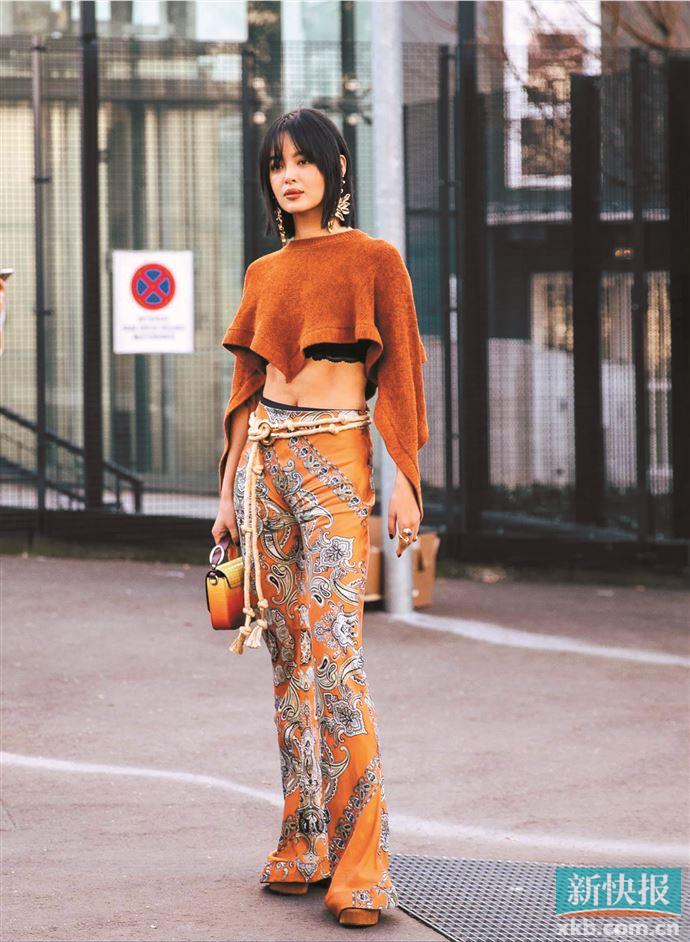 但是今季轻薄款喇叭裤同样行走在流行线上,曲线美的打造令人欲罢不能,再加上印花的加持,造型装扮的个性瞬间表达,很受好身材的明星及时装博主的宠爱。