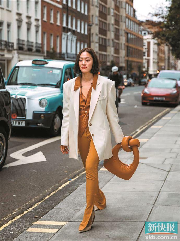 今年流行的喇叭裤长度偏长甚至拖地,与廓形感同样强烈的西装成套搭配,妥妥的“大女主”风,气场与裤长同高。