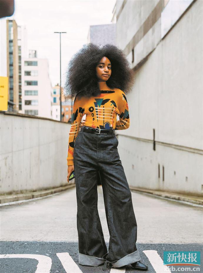 不过在选择拖地款喇叭裤时,要注意胯部及以下不宜过度紧绷,最好能顺着胯骨竖直而下,到小腿部分再打开成“喇叭”。