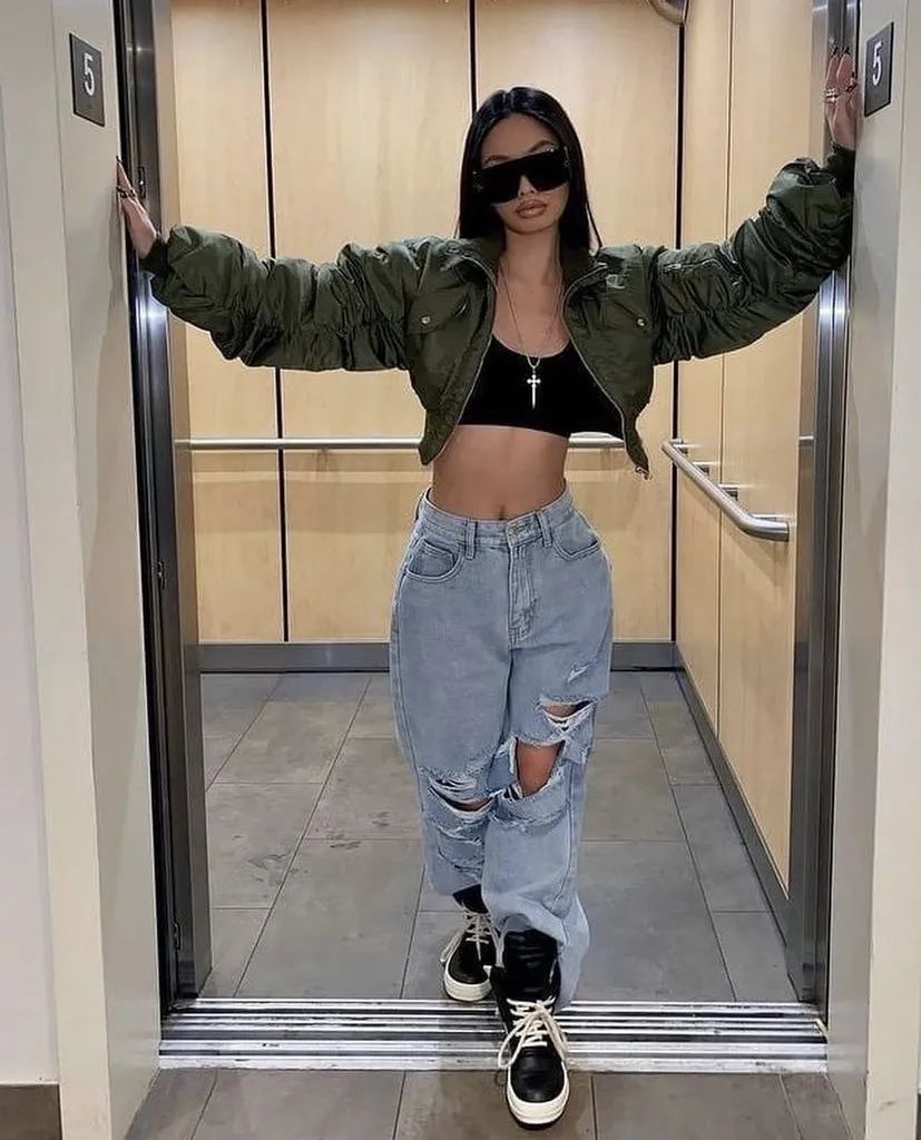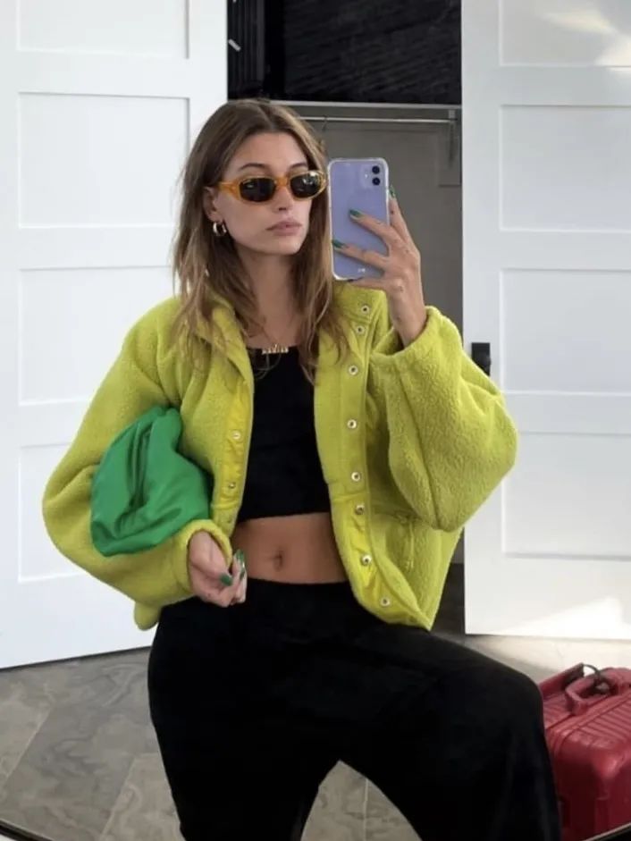 如果身型比较瘦弱,就可以通过穿廓形棒球服或者是防风夹克来扩大视觉上的体量。这两种外套加上运动bra,再搭配牛仔裤,很容易塑造青春校园感,看上去很减龄。