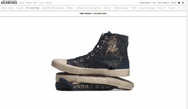 日前,法国高端消费品牌巴黎世家推出了做旧款运动鞋,该运动鞋鞋身破损,表面脏污且有瑕疵。官网信息显示,该运动鞋分为“全毁”款和“做旧”款,依据其破损程度的不同售价也不同,且破损程度越高售价越高。同时,该运动鞋限量出售100双,全毁款售价约合1.2万元人民币。巴黎世家方面表示,由于这些鞋子“非常破旧,有标记,而且很脏”,表明“是要穿一辈子的”,以此来体现反对过度消费的环保理念。