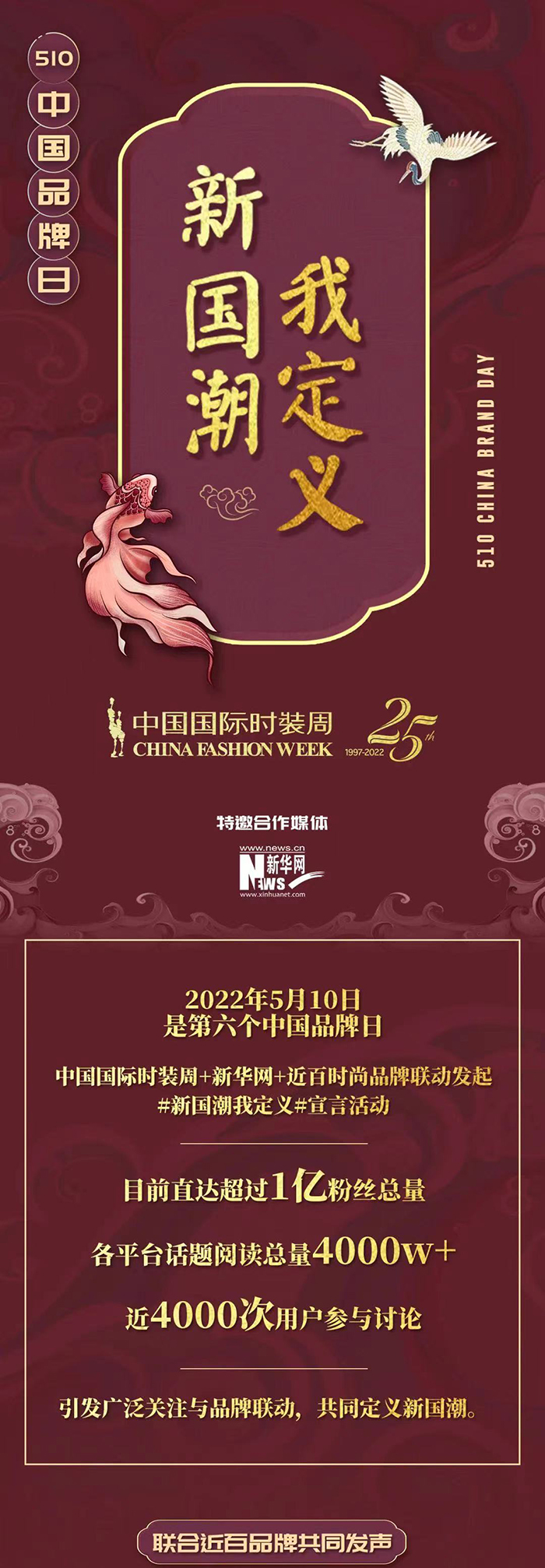 中国国际时装周已成为打造青年时尚基因的平台,致力于弘扬中国文化,携手民族品牌,引领科技国潮新风尚,鼓励品牌进行跨界合作,展开国潮流行趋势分析,挖掘国潮风格时尚领袖,更连续两年于中国品牌日携手头部媒体发布#新国潮我定义#宣言,邀请设计师们进行国潮理念专访,深挖国潮经济时代的深层逻辑。
