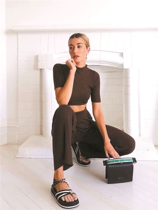 ▲纯色系的造型搭配中加入一点编织色彩,彰显不拘一格