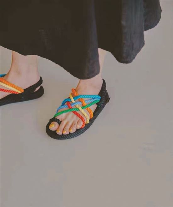 编织的样式包括简单交叉的,也有特殊形状的,色彩上今年夏季也更丰富,除常见的亚麻、米白、纯黑之外,彩色粗绳编织凉鞋别具风格,受时髦精追捧。