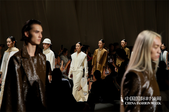 【见己·型】:此次大秀通过“唐续古今文化”,凝结东方文化底蕴与西方流行文化精粹,在中国国际时装周重点首发中国汉字“老花”图样【见己】,以中国汉字视觉标识符号为核心记忆点,贯穿整个空间、品牌视觉、服装、配饰、妆发以及周边设计等多维呈现。