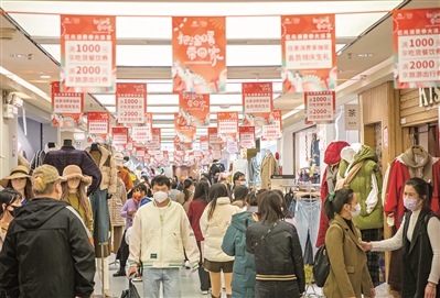 临近春节,又受冷空气影响,正是服装行业的旺季。商家们都铆足了劲,要在年前大干一场。店铺内堆放着好几袋打包好的衣服,当季的羽绒、毛衣、大衣等纷纷走俏。同时,一大波应节应季的促消费活动进行着,有效拉动了客流。