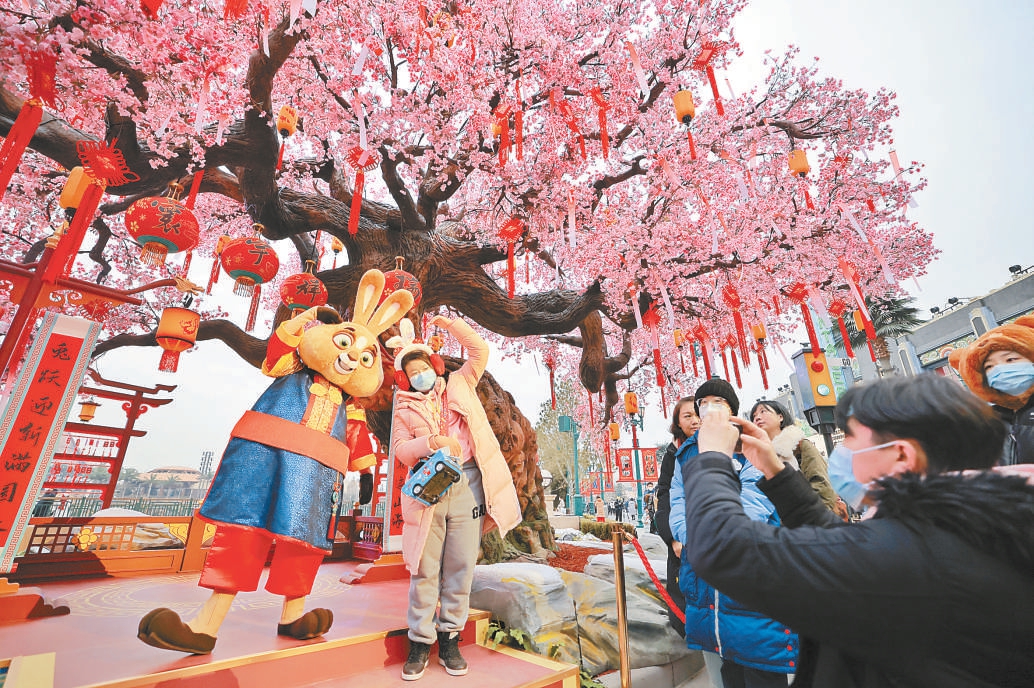 作为2023年度首个季节性主题活动,“环球中国年”将持续至2月14日。园区内外换上了农历新年主题装饰,俏皮可爱的生肖兔子元素、喜气洋洋的灯笼、趣味横生的春节对联、剪纸风格的道旗等,引得游客称赞连连。生肖专属角色、全新舞狮和更多限定美食及周边商品也一同上新。