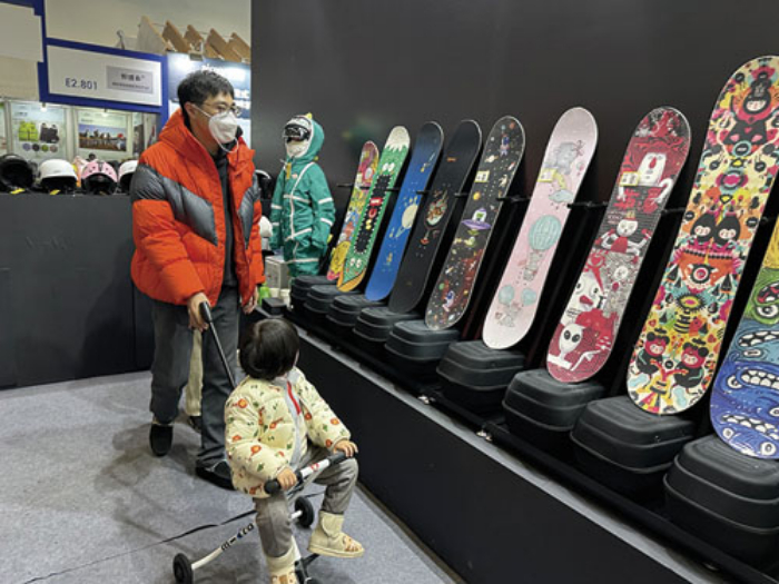 在第十七届亚洲运动用品与时尚展上,记者看到许多滑雪爱好者正在挑选滑雪装备,也有“发烧友”在询问商家能否自己设计图案定制。记者在酷动体育的展位前看到一款滑雪服有多处可以贴魔术贴徽章的位置,设计感十足。工作人员徐玮康告诉记者:“这款滑雪服的魔术贴徽章都是可以撕下来更换的,消费者可以根据自己的喜好定制魔术贴徽章;也有滑雪俱乐部购买这款滑雪服,定制俱乐部的Logo贴在魔术贴的位置,就成了俱乐部的队服。”