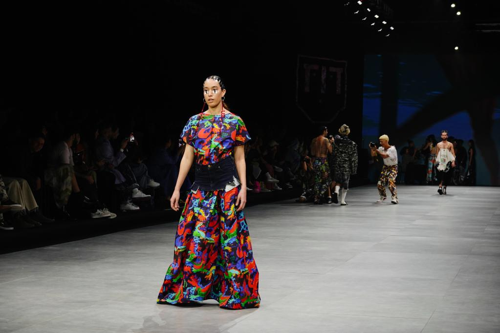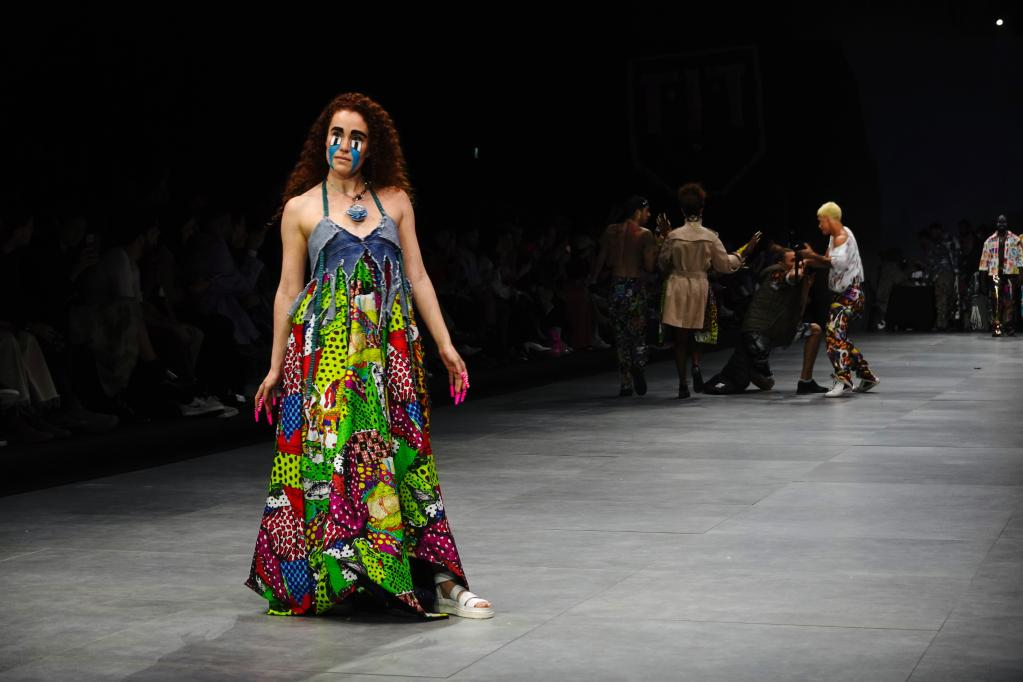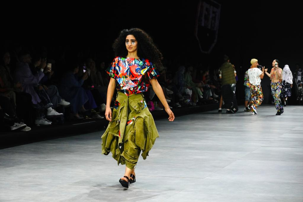19日进行的首场走秀主打“变废为宝”。若不了解背后的故事,很难想象那一件件时装都是由二手服装及废弃物材料制成。设计师大卫·韦克斯勒向新华社记者介绍说,这一系列时装全部取材于旧衣旧物的零碎面料,采用数码印花技术缩短生产周期,美感与质量却毫不“打折”。