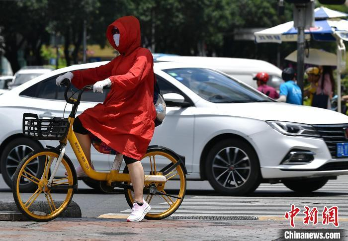 市民在烈日下出行。 张斌 摄