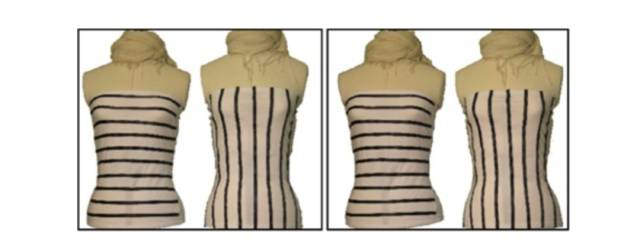 在2011年,一篇文章也详细研究了横竖条纹衣服的视觉效果。首先,他们给卡通人物换上了横竖条纹的衣服,让人判断这两个人的身材。结果发现,人们认为穿竖条纹衣服的女生比横条纹衣服的胖大约6%。但也有反对者认为,横条纹只有在二维平面里才显得高挑,但在现实的三维空间中还是竖条纹更显瘦。但这个研究团队的研究同样证实了,在三维空间里依然是横条纹更显瘦,甚至显瘦效果更明显。研究人员建立了三维人体模型,给模型穿上横竖条纹的衣服,结果发现,受试者认为水平条纹的人更显瘦,而且比竖条纹的人看起来瘦10%。所以,一切证据都说明,亥姆霍兹当年的猜测是正确的。