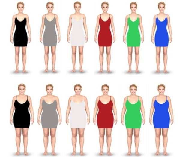 2021年,发表在《心理学报》(Acta Psychologica)上的一篇研究就证实了这一点。在这项研究中,研究人员通过计算机生成了两组穿不同颜色衣服的人的图片,一组身材比较纤细,另一组比较丰满,然后让31位女性对图片上的人从吸引力、身材胖瘦等几个维度进行打分。结果显示,无论是对身材纤细还是身材丰满的人来说,穿黑色、蓝色、红色的衣服,体型看起来比实际体型要瘦。在这三种颜色里,“显瘦”效果又是:黑色>蓝色>红色。相比之下,灰色、绿色、白色的衣服更“显胖”。而显胖效果为:白色>灰色>绿色。