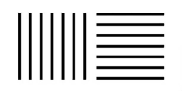 但在1867年,亥姆霍兹就写下了很多日常生活中的视错觉现象,其中就包括“穿着横条纹连衣裙的女孩看起来更高挑”。为了验证这个错觉,亥姆霍兹对比了两个大小相同但条纹不同的正方形。他发现横条纹的正方形看起来比竖条纹的区域更高。