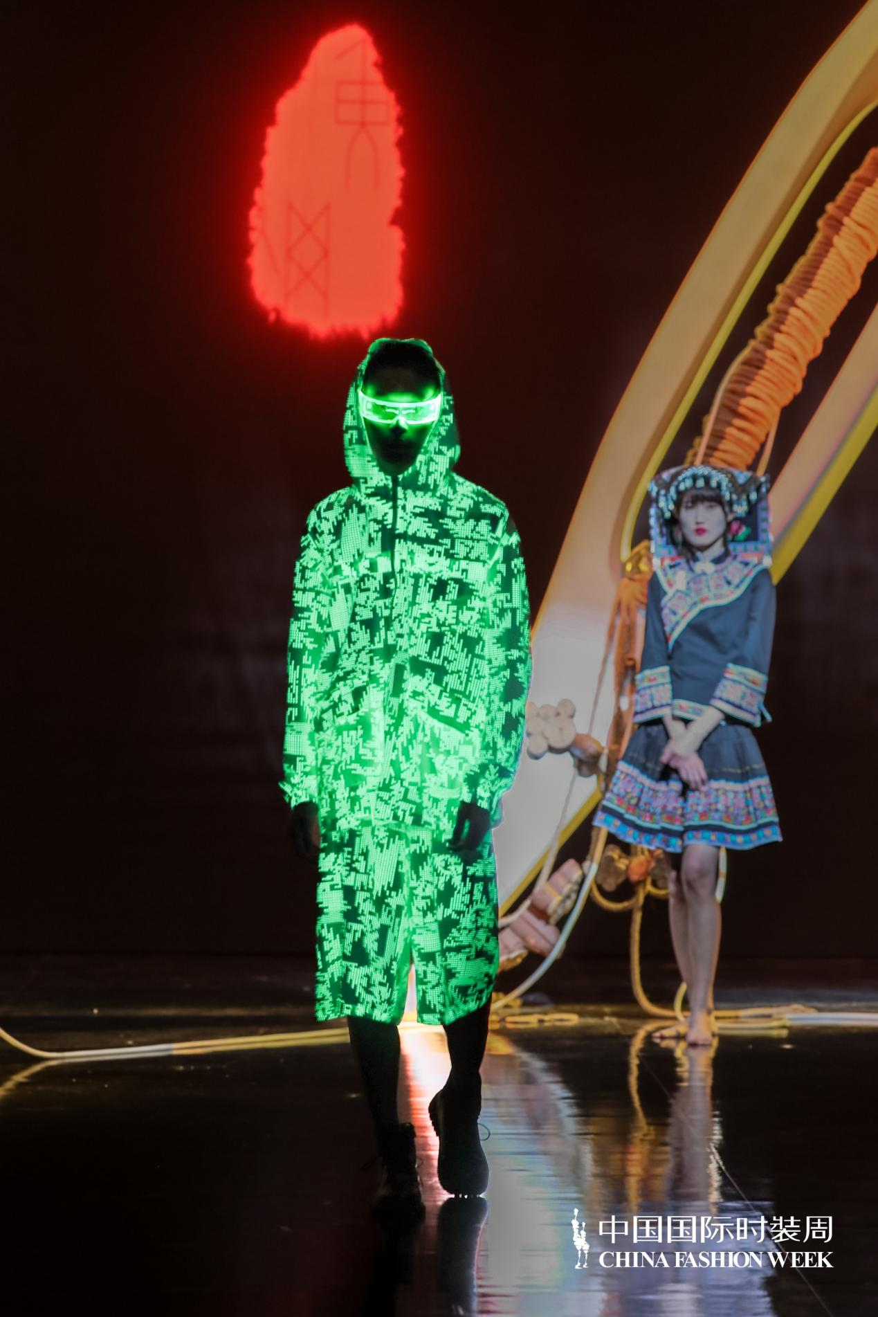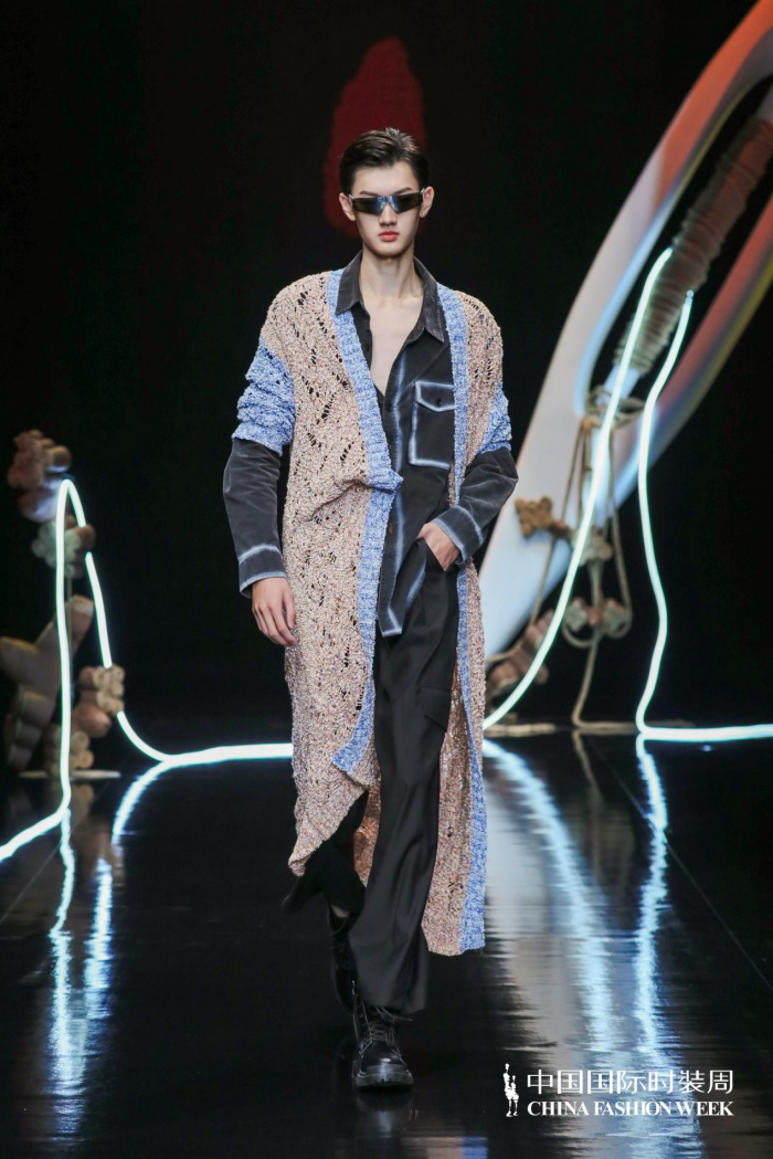中国非物质文化遗产香云纱,是广东岭南地区一种古老的手工织造和染整制作的植物染色面料。而慈星股份STEIGER国际领先的3D针织打印技术,可以最大可能的实现设计师的奇思妙想,将针织服装设计带入一个全新的领域。本季作品便是结合香云纱与3D针织打印技术设计而成,体现出新旧工艺交融之美。