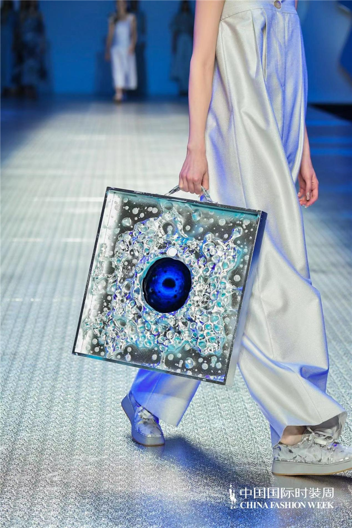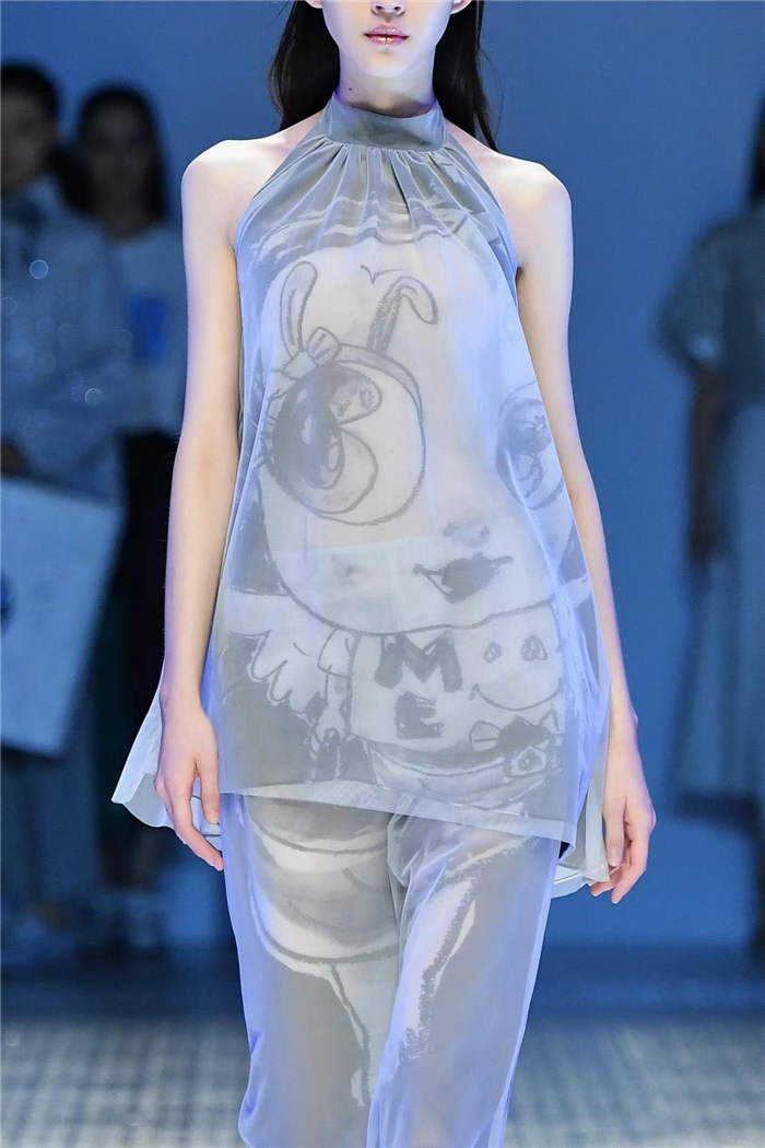 本季的原创艺术印花融合了艺术家张晓东以及当代艺术家薛征的作品,采用3D浮雕打印以及不对称设计细节的变幻,串联起女性独特的生命律动,描绘一段冲破无形桎梏,释放真实自我的旅程。
