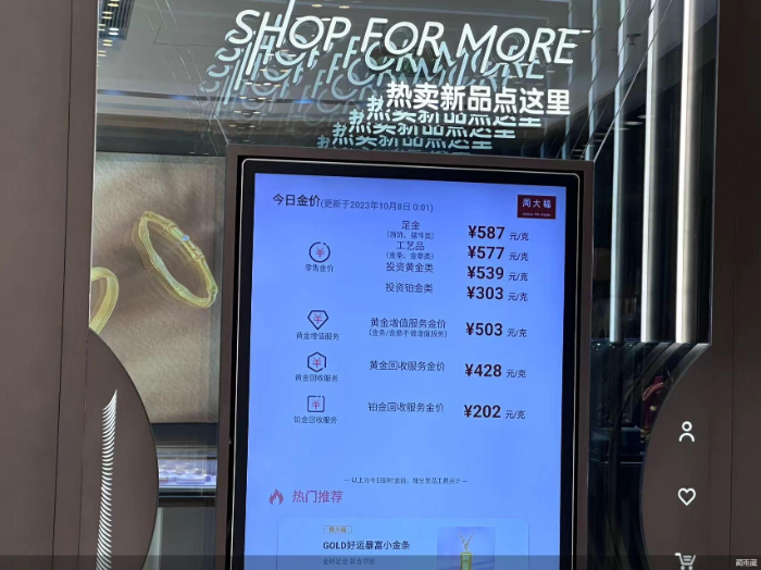 黄金价格连续下跌也让不少消费者蠢蠢欲动。北京商报记者走访发现,“双节”刚过,部分品牌仍旧延续着节假日的优惠力度。周生生店员就向北京商报记者表示,“现在还有‘十一’的优惠,克减40元,算下来一克547元,是近期价格最低点了,所以来询问的顾客也比较多”。唯品会数据显示,长假期间,珍珠吊坠销量同比增长55%,黄金手链、黄金戒指等销量同比增长20%以上。但也有不少消费者表示将继续观望,小红书中,有网友发帖称,“普遍的消费心理还是买涨不买跌,想再看看金价是否会继续回落”。