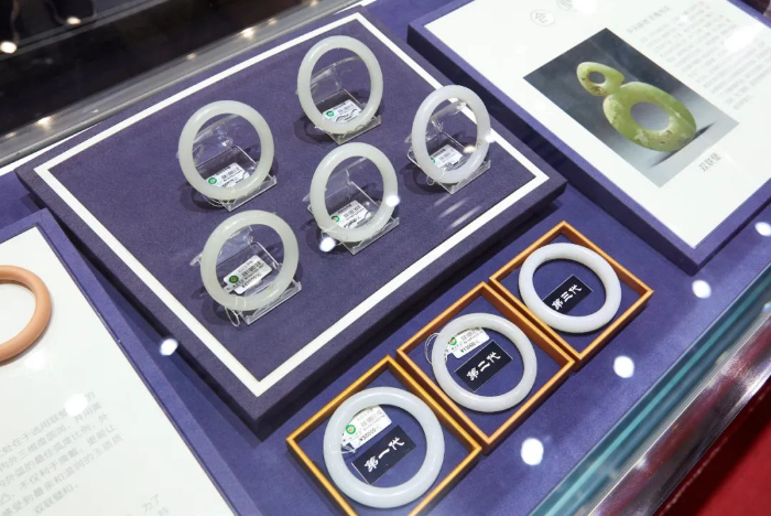 在本次展览中,服务升级后的七彩云南原创专利设计产品合璧镯在珠宝展展出,不同于传统的圆条手镯与扁口手镯,合璧镯选用双联璧经典的内外弧造型,周体内外三维度圆润,并用黄金分割数据算出内外弧的最佳弧度比例,合璧镯经过数百次的打板、试戴,创造出“外弧饱满,内弧微凸”的全新镯型,开创手镯镯型3.0时代。