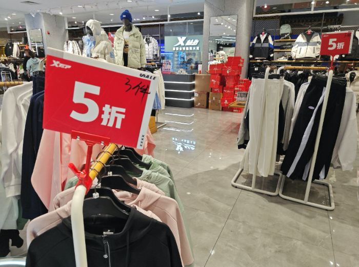 12月1日,中国商报记者走访位于北京银泰百货的特步门店发现,仍有很多秋季产品正在打折促销中,部分衣裤特惠“三件五折”力度较大。