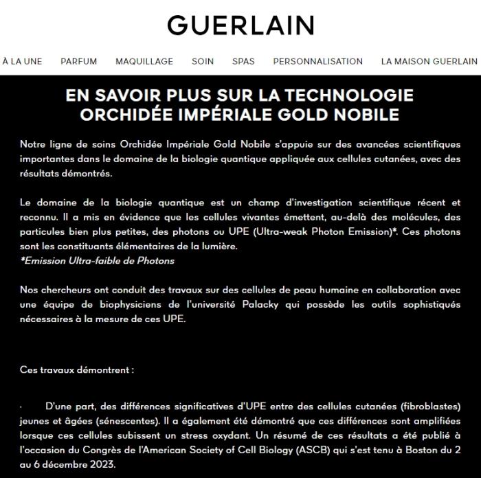 但娇兰并没有就此放弃“量子”一词,而是解释说,“量子生物学领域是一个新近且公认的科学研究领域”。据娇兰介绍,其护肤系列“基于应用于皮肤细胞的量子生物学领域的重大科学进展,并已得到证实”,还称与帕拉茨基大学的生物物理学家合作。