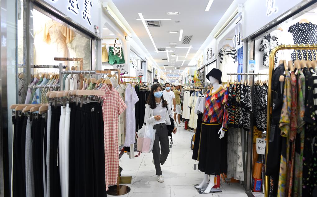 客商在广州市十三行广场里选购服装(6月13日摄)。新华社记者 卢汉欣 摄