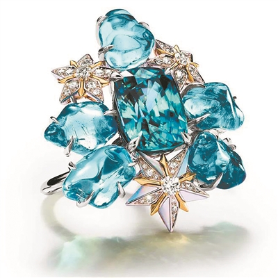 众所周知,高级珠宝系列所采用的一般都是金贵的材质,包括钻石、红蓝宝石、祖母绿。有趣的是,今年所发布的作品当中,有不少小众宝石成功脱颖而出,其中以“天然锆石”备受瞩目。记者留意到,不仅是宝曼兰朵在作品中选用了它,连蒂芙尼也在Tiffany Céleste苍穹万象高珠系列中使用了它。业内分析,这次蒂芙尼和宝曼兰朵可能也是因为颜色更为契合自己的创意才开始这次的“复古”。