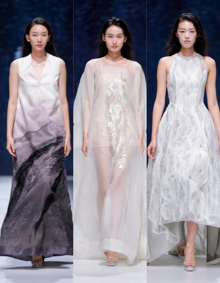 本次大秀以玉树文化为灵感,提取玉树三江源文化元素贯穿整个系列,同时还采用了玉树岩画典型图案、玉树牦牛绒创新材料等,结合了植物染、苏绣等非遗工艺,通过“黄河奔流”“长江滋养”“澜沧江博大”“夜与昼融合”四个篇章,表现三江源的神秘广袤,不仅是对三江源文化的吟咏,更是对生命力量的颂歌,展现了玉树三江源作为文化与生命的源泉,滋养万物,生生不息。