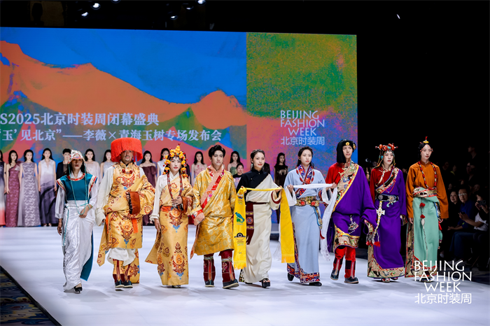 本季北京时装周的压轴大秀由京玉两地设计师联合打造,清华大学美术学院长聘教授、博士生导师、中国纺织非遗推广大使李薇以玉树文化为灵感设计开发的礼服系列,以服饰为载体,运用国际化、时尚化的设计语言,创新转化玉树文化,致敬玉树三江源。来自玉树的藏艺家、陀功阿妈、阿布嘎嘎、德仁凰品牌藏服系列同台呈现,组团来京发布展示。