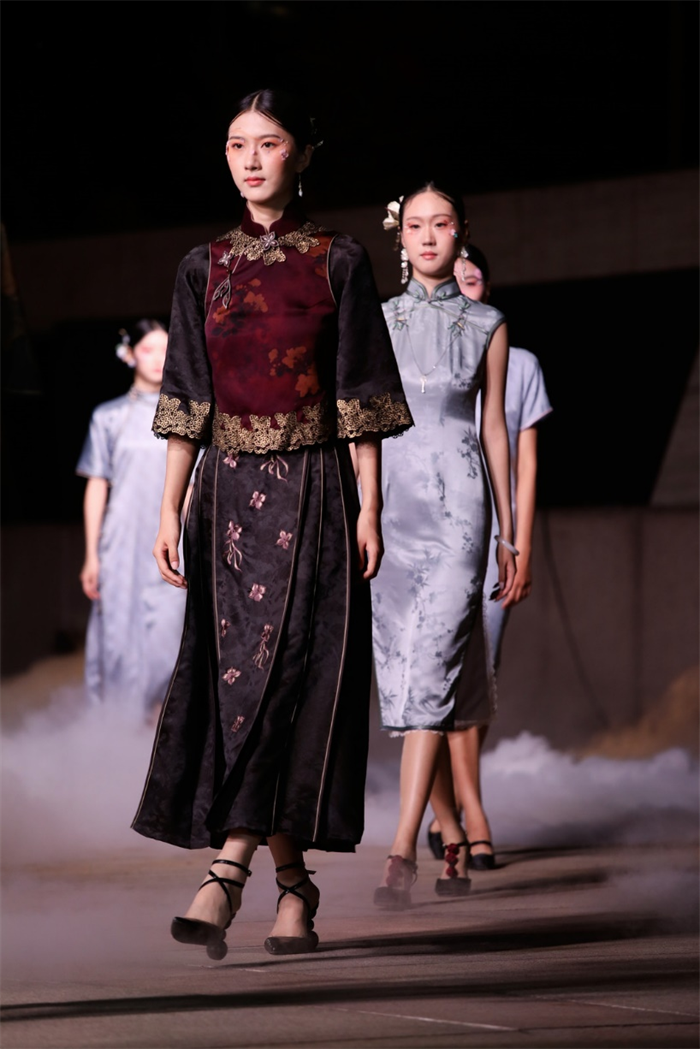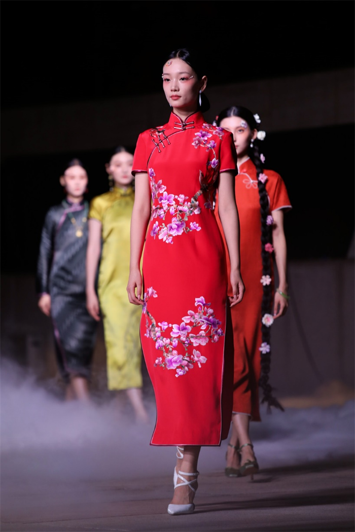 本次发布会上,红馆旗袍不仅展示了全新2025春夏系列,更以实际行动助力中国非物质文化遗产的传承与发扬。发布会现场特别设立传统旗袍非遗展区,这里展示了红馆旗袍精心挑选的非遗旗袍作品,每一件都蕴含着深厚的文化底蕴和精湛的手工技艺。通过展区,观众不仅可以近距离感受非遗旗袍的魅力,还能深入了解旗袍文化的历史渊源和发展历程。