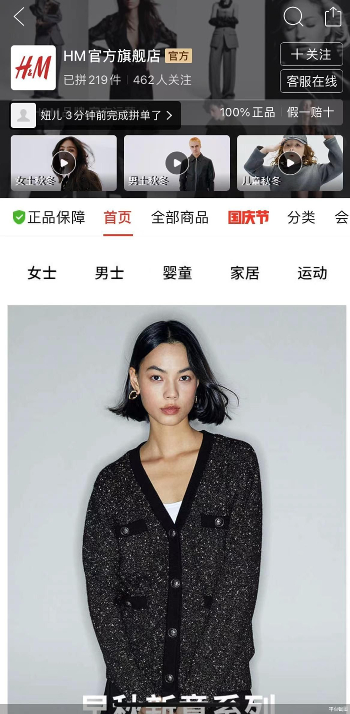 对此,快时尚品牌H&M的相关负责人回复称,此举是为了给中国消费者提供全渠道购物体验,H&M在拼多多的店铺将在10月下旬正式开业。