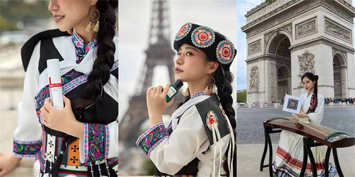 值得一提的是,贝泰妮集团在参加国际化妆品盛会的同时,还特别携手身着来自云南的纳西族特色服饰及薇诺娜品牌定制彝族马面裙的古筝演奏者,在法国巴黎的时尚街头呈现了多场精彩绝伦的中国传统民乐快闪表演。极具中国民族特色的、流动的裙摆与绚丽发饰,引来了众多国际友人的关注目光。贝泰妮希望以本次国际盛会为桥,美美与共,串联起“民族的才是世界的”美好愿望。