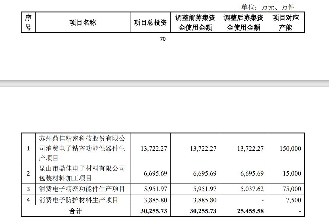 但第二轮审核回复显示,2025年3月,鼎佳精密取消了“消费电子防护材料生产项目”。对此,鼎佳精密回复记者表示,公司募投项目变动是审慎评估市场环境以及内部资源优化的结果。