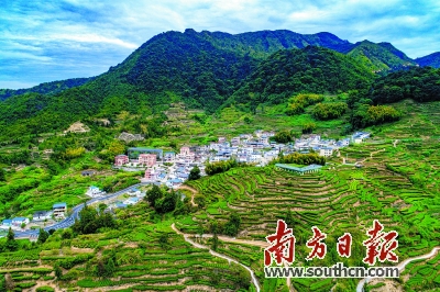 村庄在万亩茶园环绕之中,茶叶是当地村民致富之宝。袁群华 摄
