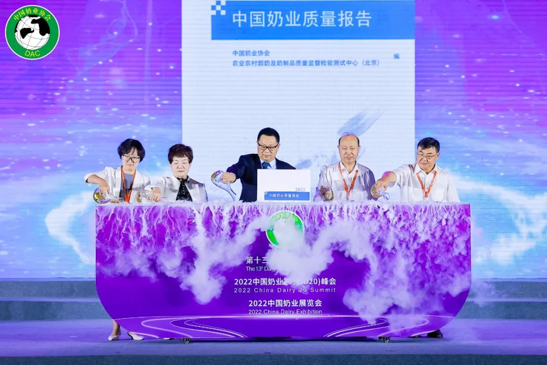 从左至右:农业农村部奶及奶制品质量监督检验测试中心常务副主任郑楠、中国奶业协会副会长兼秘书长刘亚清,中国工程院院士、中国奶业协会副会长沈建忠,中国工程院院士、中国奶业协会副会长任发政,国家奶牛产业技术体系首席科学家李胜利,共同参加了发布仪式。