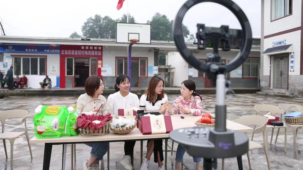 村干部在金钗村便民服务中心开展直播带货。(受访者供图)