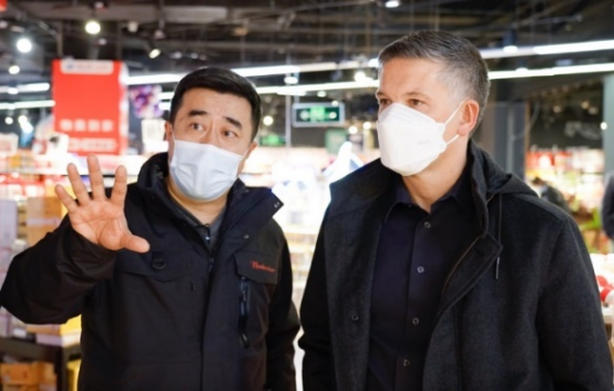 百威集团全球首席执行官邓明潇(右一)走访市场