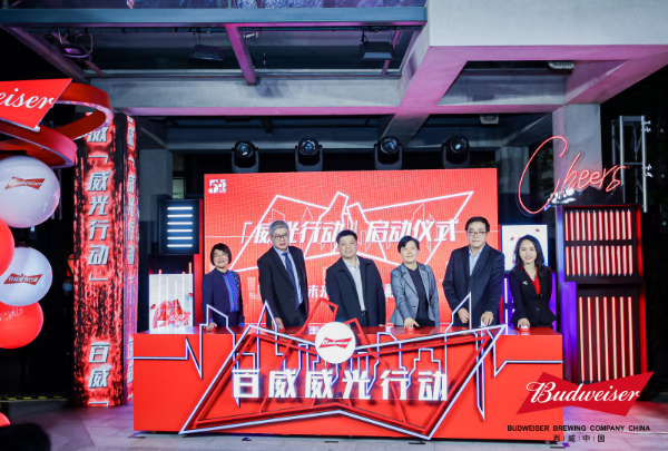 4月28日,上海市黄浦区政府于思南公馆举办第四届“五五购物节”黄浦区启动仪式。随后,在上海市商务委员会和黄浦区政府的指导下,百威中国联手解放日报·上观新闻于思南公馆启动“威光行动”。面迎消费提振年,百威中国积极响应“创新消费场景、营造消费氛围、提振消费信心”等号召,在第四届“五五购物节”期间,与解放日报社共同发起“威光行动”,以上海为起点,辐射全国,旨在激活更多消费场景,打造夜市氛围,助燃人间烟火气,助力提振夜经济活力。上海市商务委员会二级巡视员李泓、黄浦区人民政府副区长王鼐、解放日报社副总编辑陶峰、上海市黄浦区商务委员会主任金韶靖、百威中国华东事业部总裁刘竹西、百威中国企业事务副总裁朱江柳等出席启动仪式。