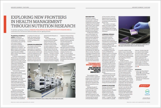 6月15日,国际权威科学杂志Nature首次推出中国营养研究增刊,发布了以营养研究探索健康管理新领域为主题的采访文章,重点报道了汤臣倍健关于PCC1(原花青素C1)、专利益生菌等多个前沿研究成果,汤臣倍健科学营养战略及初步成效受到全球行业杂志重点关注和认可。