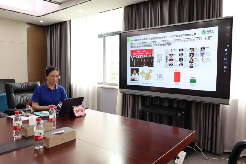 康婷婷将一年多来新洋丰在绿色种植和土壤改良方面所做的探索作了汇报。