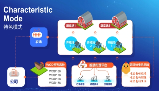 数字化赋能,实现养殖数据的自动采集和智能调控,为鸡群提供“温适宜、气清新、水清澈、光明亮、料新鲜”五星级酒店般的舒适环境,创新适合中国国情的农场动物健康养殖新模式,“不免疫、不消毒、不投药、不分群、不抓鸡”的五不打扰,保证鸡群快乐健康。该模式通过“公司+家庭农场”联农带农,示范引领当地及周边养殖方式的转变,通过大数据实现肉鸡行业治理现代化,通过肉鸡繁育五代金字塔1:24万倍的放大效应,极大促进了产业增效增值、农民增产增收。