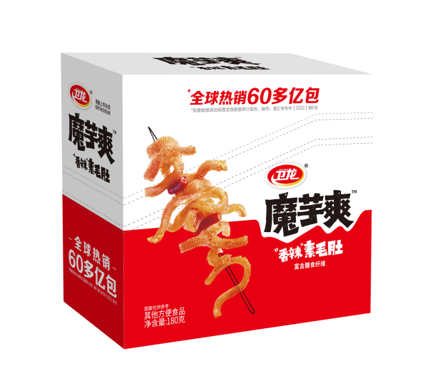 据相关资料显示,卫龙魔芋爽的研发灵感源自卫龙研发团队一次涮火锅的过程。2009年3月,卫龙研发团队在成都吃火锅时,发现有一道叫做魔芋的素食在火锅里涮过后分外香辣Q弹、爽滑美味,于是便诞生了以魔芋为原料制作零食的想法。在卫龙研发负责人的带领下,团队耗时五年,运用源自四川地道雪魔芋的急冻蒸煮工艺,最终成功造就了爽脆、Q弹的卫龙魔芋爽。